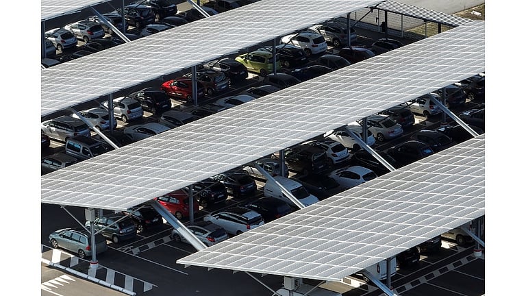 Carports will soon be a regular feature in South Korea as the government mandates the use of renewable energy systems on parking lots. (Illustrative Photo; Photo Credit: Bilanol/Shutterstock.com)